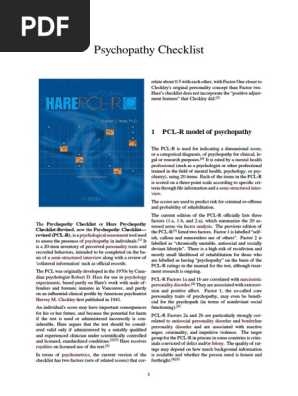 Denkst du du bist keiner aber bist dir nicht ganz sicher. PCL-R Konstruktvalidität Item-Response-Theory in. Die deutsche Version der Hare Psychopathy Checklist-Revised PCL-R.