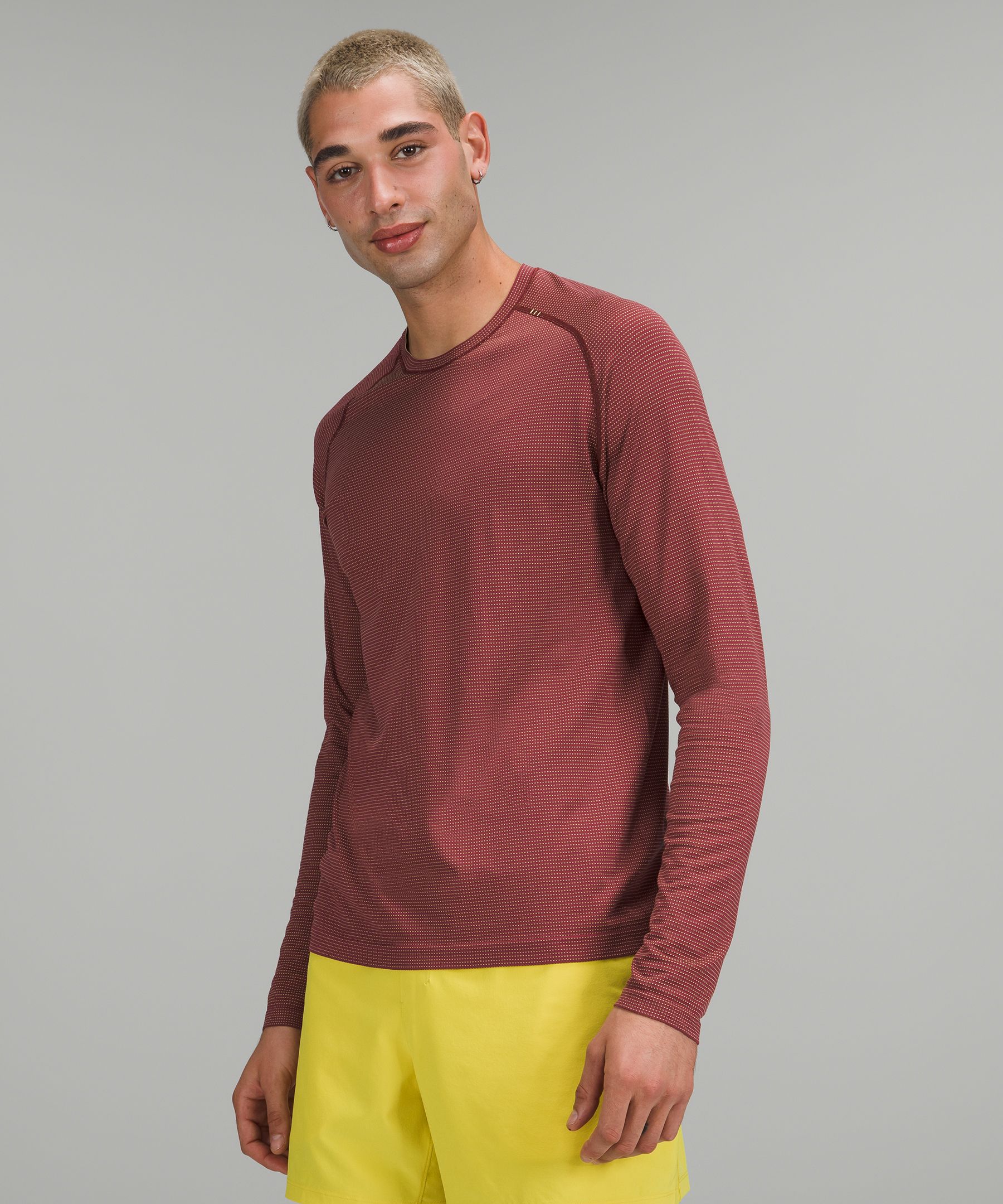 Seller 100 positive Seller 100 positive. Ironman lululemon mens the fundamental tee shirt. Built to perform sweat after sweat. Green Lululemon Drysense Training Long Sleeve. Case in point lululemons all-new Metal Vent Tech Long Sleeve 20 an advanced purpose-built workout garment remedying two of the biggest issues associated with long-distance running and training garments. Disrupted Grid Mulled WinePink Savannah. Slim Fit A streamlined fit that skims your body Material Contents49 Nylon 43 Recycled polyester 4 Elastane 4 X-static nylon. A lightweight and breathable long-sleeved shirt keeps the air flowing so you can hit the ground running. It is the same as stock photos.